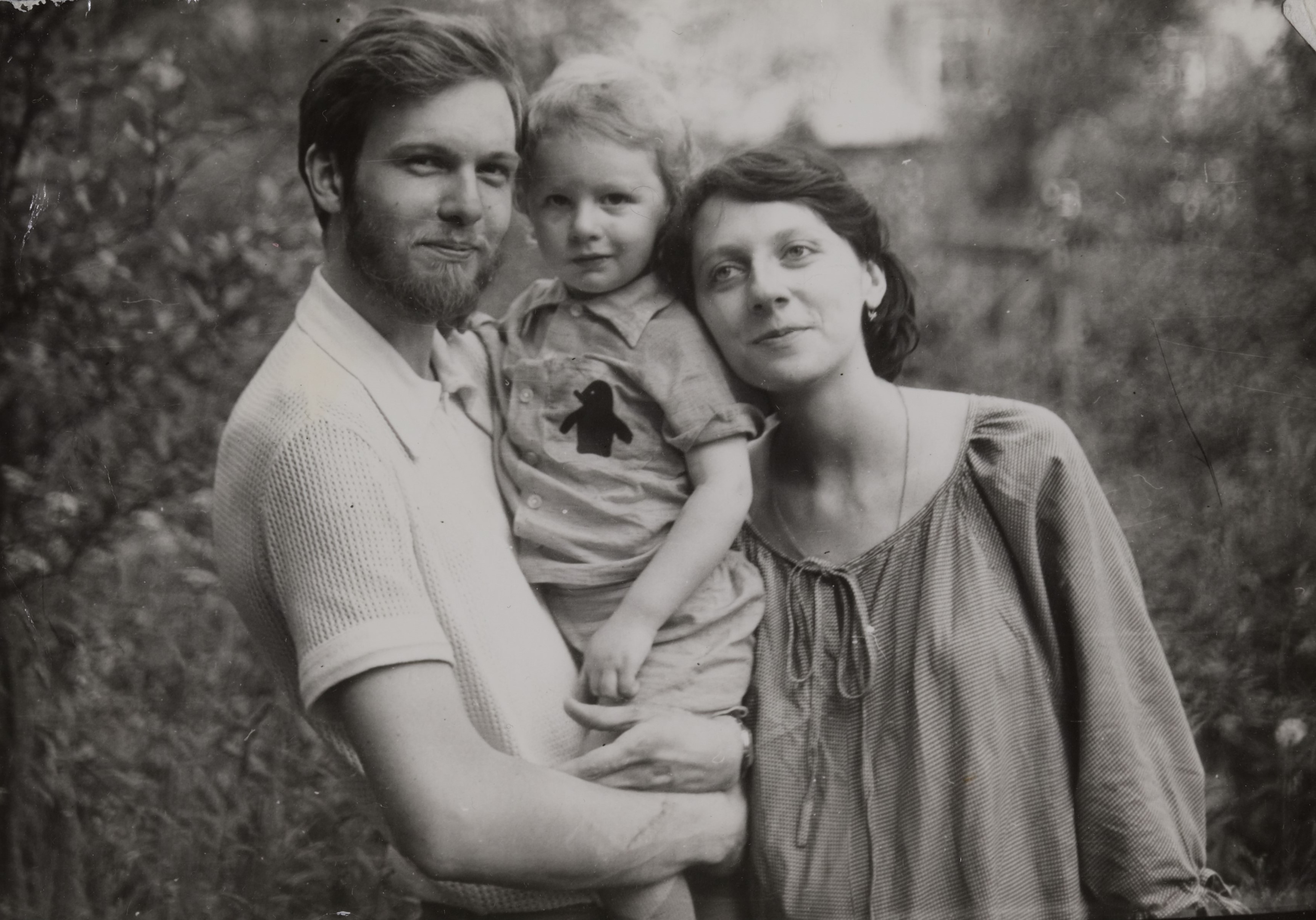 С мужем Алексеем Шмелевым и сыном Сашей. Малаховка, 1980