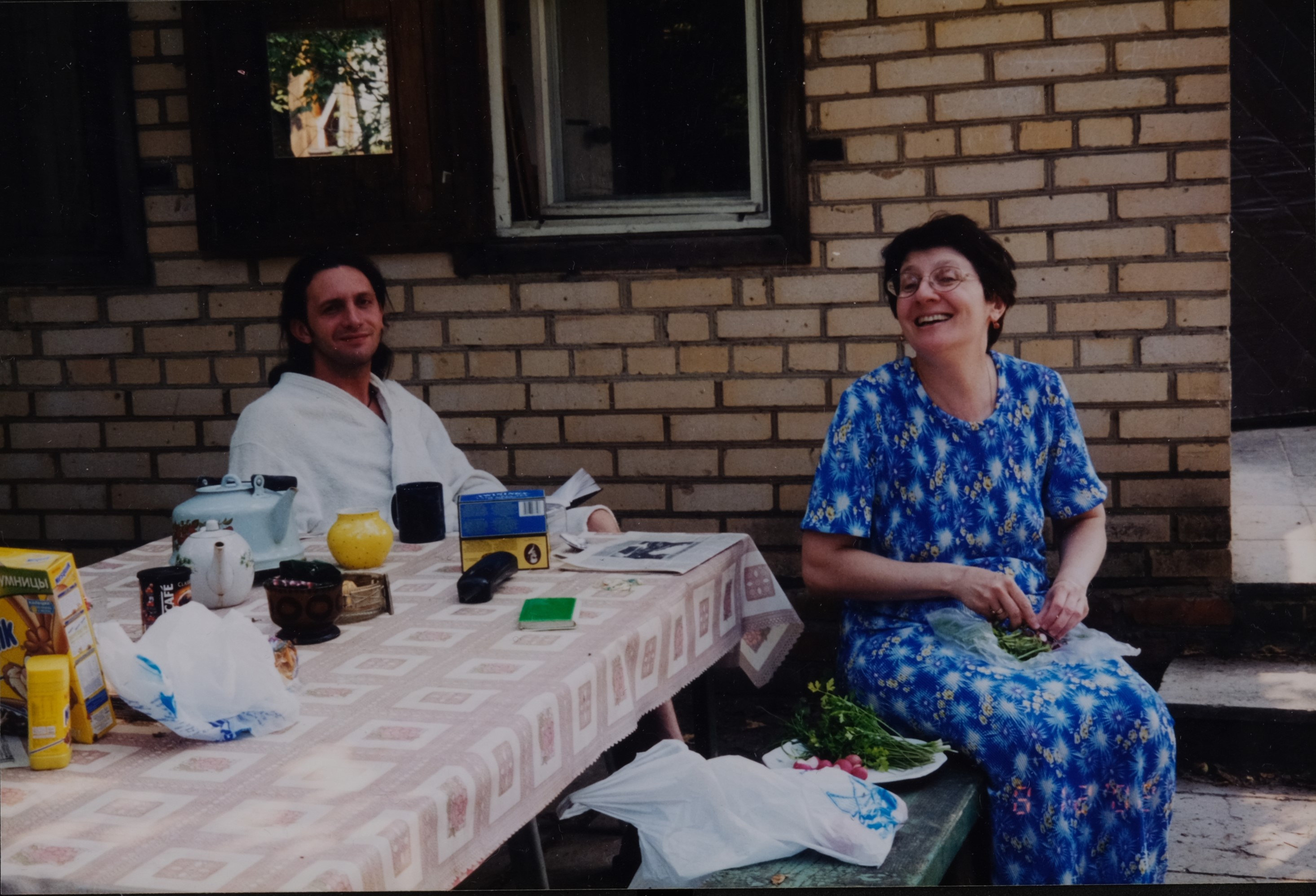 С сыном Сашей. Малаховка, 2000