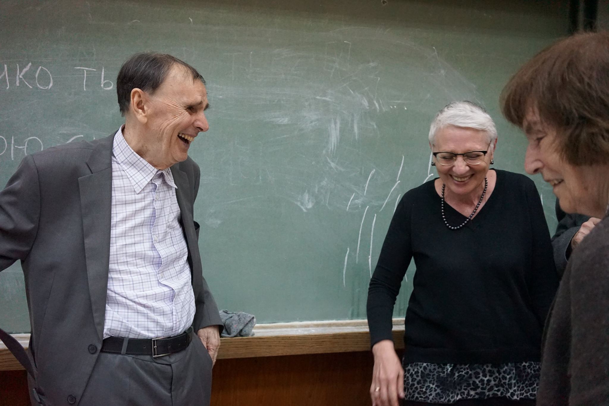 С Андреем Анатольевичем Зализняком и Еленой Викторовной Падучевой. МГУ, 2015