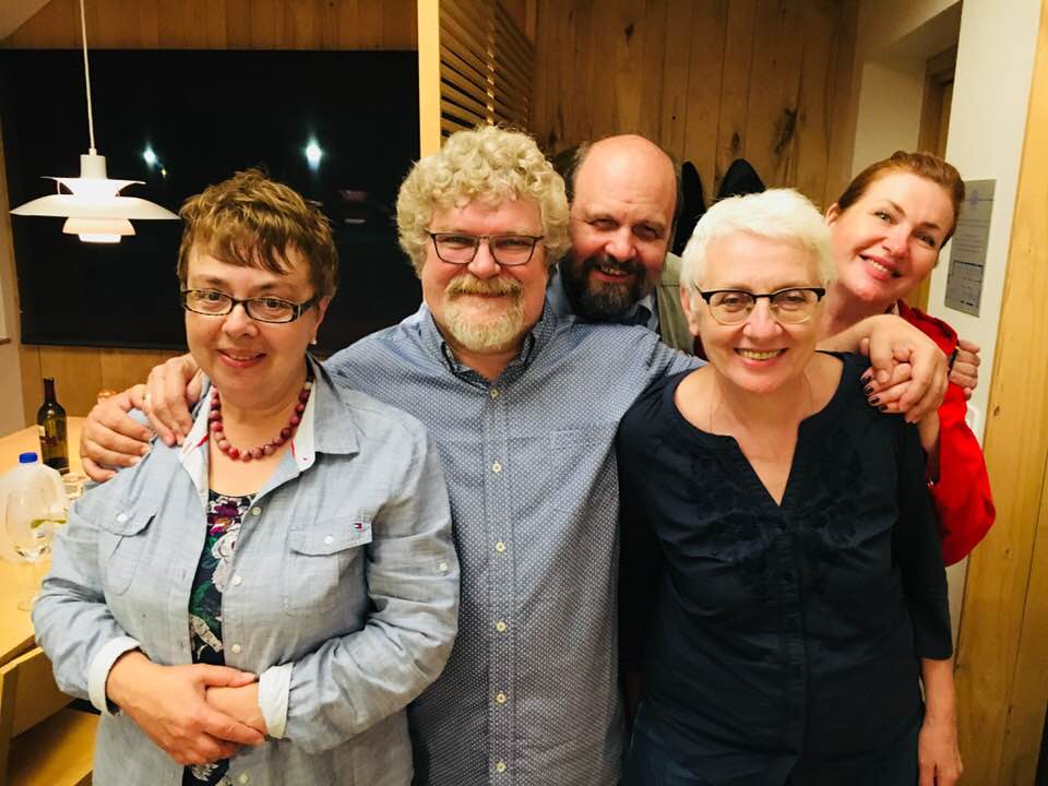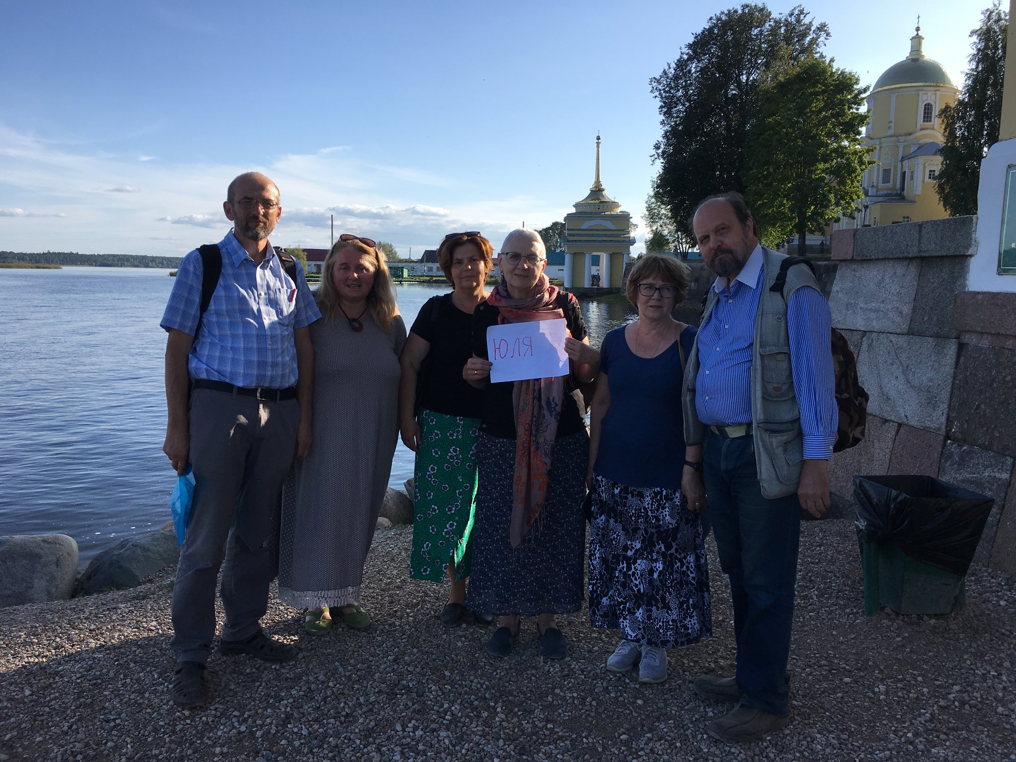 Слева направо: Александр Кравецкий, Ирина Левонтина, Александра Плетнева, Елена Шмелева, Наталья Гольдман, Алексей Шмелев. Осташков, 2019
