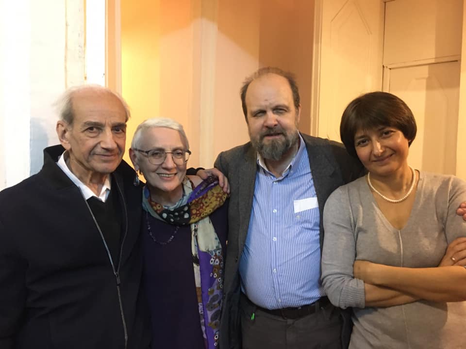 Слева направо: Юрий Дереникович Апресян, Елена Шмелева, Алексей Шмелев, Валентина Апресян. 90-летие Ю. Д. Апресяна. Москва, ИРЯ РАН, февраль 2020
